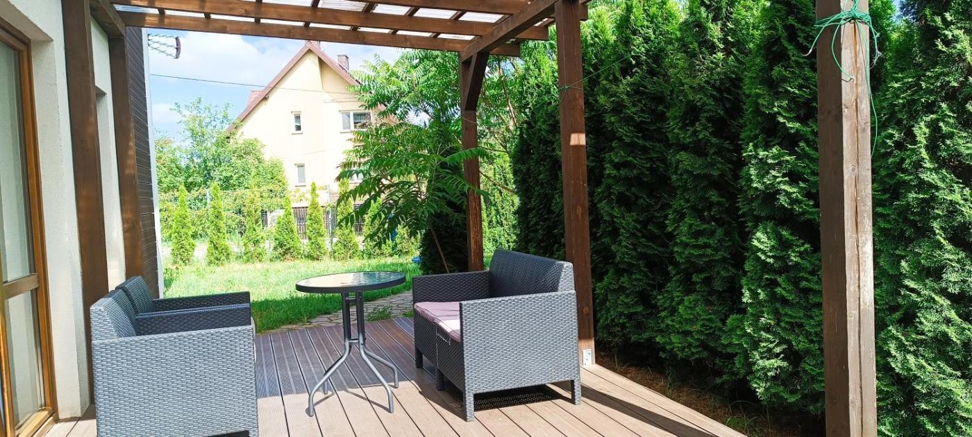 Dom z 1 sypialnią. This holiday home consists of 1 living room, 1 separate bedroom and 1 bathroom with a shower and a hairdryer. Guests will find a stovetop, a refrigerator, a toaster and an electric kettle in the well-fitted kitchen. The holiday home also offers a barbecue. Featuring a terrace with garden views, this holiday home also provides a seating area and a flat-screen TV. The unit offers 3 beds. Dom wakacyjny - 5 osobowy. Powierzchnia pokoju ok.: 35 mkw.